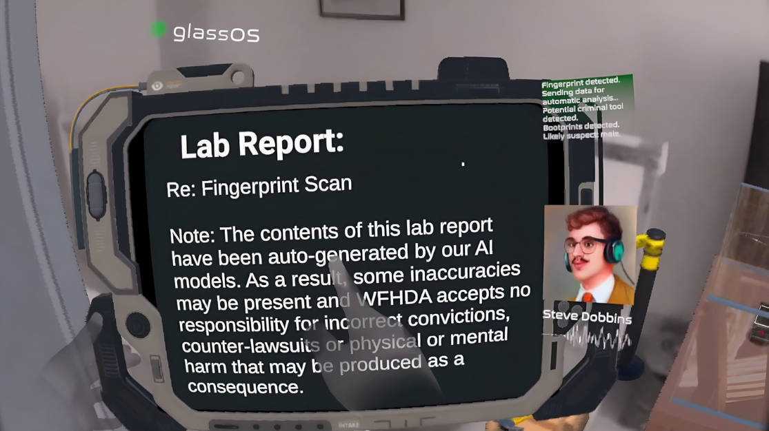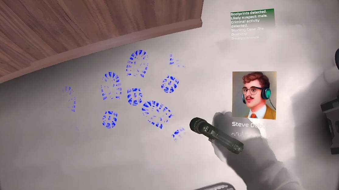 用你自己的客厅破案! 使用 passthrough,犯罪现场会叠加到您的游乐区,让您可以自由探索和寻找线索。