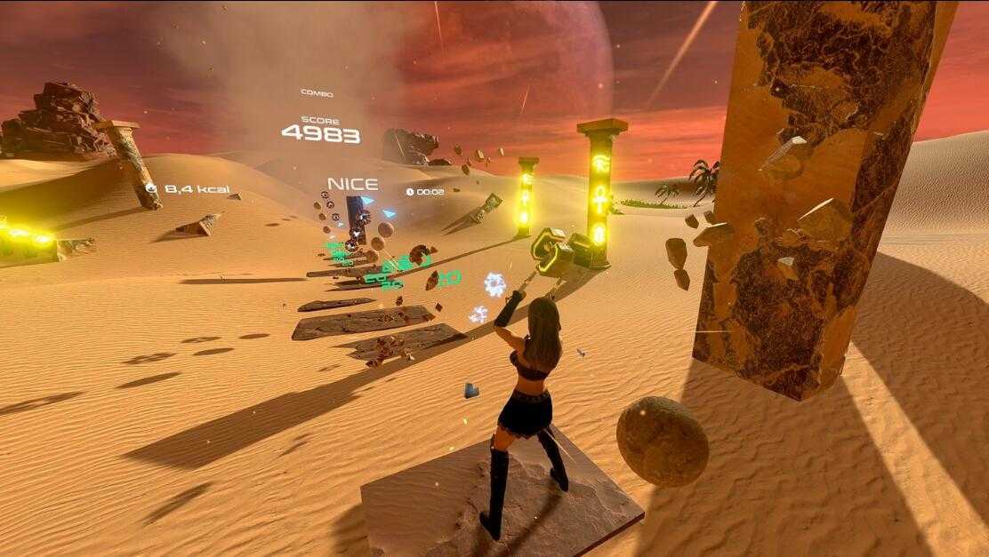 在多个虚拟竞技场中通过具有挑战性的障碍课程,在您出拳、躲避和躲避时随着节拍移动。将传入的巨石粉碎成碎片,轻松燃烧这些卡路里。