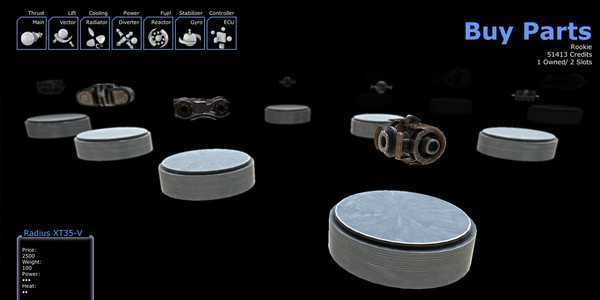 比赛的输赢取决于细心的调教。某些任务需要精选的部件,配件,被动武器或支持套件。无论是一个全速冲刺赛,一个坚硬耐力赛还是一个爬山赛,抬升力都要比推进力重要;演化或者落下。